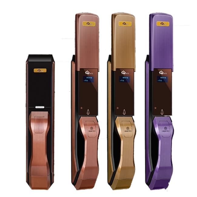 指紋開鎖、密碼開鎖、鑰匙開鎖、葉片級(jí)鎖芯,防撬報(bào)警功能,真人語音提示,密碼防窺視。