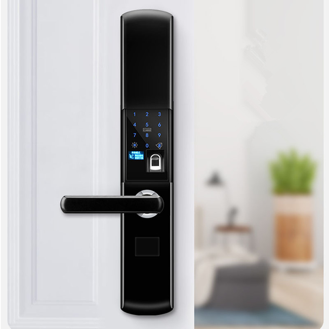 產品優勢:超C級安全鎖芯、6-16位防窺視虛位密碼、半導體活體生物指紋識別