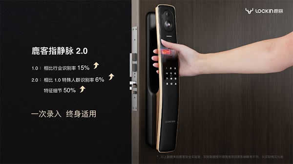 鹿客科技率先通過產品外觀優化與核心算法升級等一系列技術創新,成功打造出業內首款指靜脈智能門鎖爆品。鹿客指靜脈技術1.0的整體識別率高出行業平均水平15%,推動了國內指靜脈智能門鎖的發展進程。本次發布會上,鹿客科技推出了全新升級的指靜脈技術2.0,在第一代的基礎上,針對特殊人群、特殊場景識別率提升6%,全人群特征細節抓取增加50%,可實現“一次錄入,終身適用”,引領行業指靜脈技術的革新。