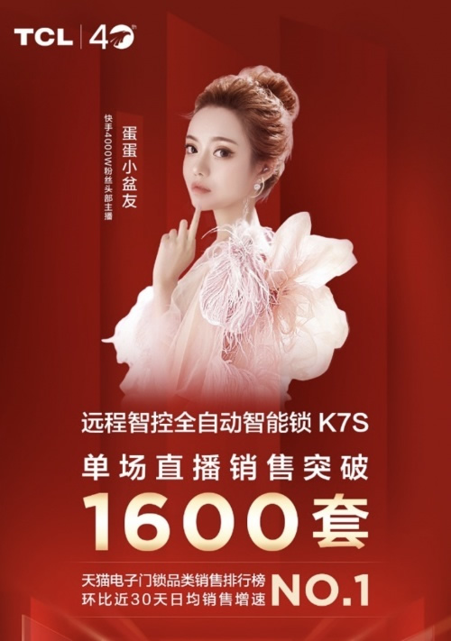 同時,積極重視直播帶貨,在快手聯合中央廣播電視總臺舉辦的“實實在在寶藏國貨”活動,用場景化和的互動方式,創造了遠程智控全自動智能鎖K7S單場直播銷售突破 1600 套的成績,并斬獲天貓電子門鎖品類銷售排行榜首的佳績。