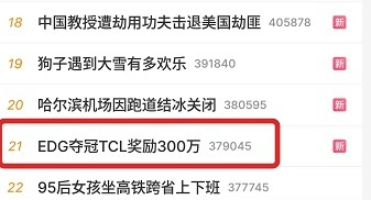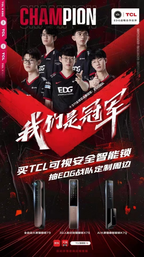 電競娛樂是年輕人的新愛好和社交方式,也是TCL智能鎖的重點營銷領域。11月6號,EDG奪得S11冠軍成為全球超級熱門事件,TCL作為戰略合作伙伴也迅速做出反應,“EDG奪冠TCL獎勵300萬”話題成為全網熱門,豪擲“百萬”為立下功勞的EDG隊員“慶功”,不僅贏得年輕人的好感和點贊,更是獲得巨大的品牌曝光效果。