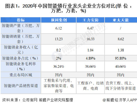 1、中國智能鎖行業龍頭企業全方位對比