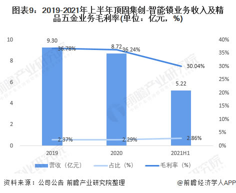 公司采用以經銷模式為主,大宗客戶與直營模式為輔的銷售模式。2019-2021年上半年,頂固集創的智能鎖業務收入呈下降趨勢,但占總營業收入的比重上升。