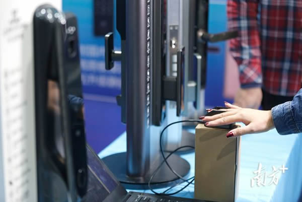 參展商在現場演示鎖具的靜脈識別技術。 南方+ 葉志文 拍攝