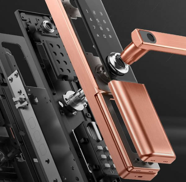 如果你覺得低價密碼鎖外觀功能大同小異,想要多一點設計感的產品,這款德施曼T11Pro指紋密碼鎖可能會比較合適。它支持密碼、指紋、NFC等解鎖方式。全新指紋解鎖模塊識別更加快速準確,握住把手下壓同時就能完成指紋識別,方便高效。