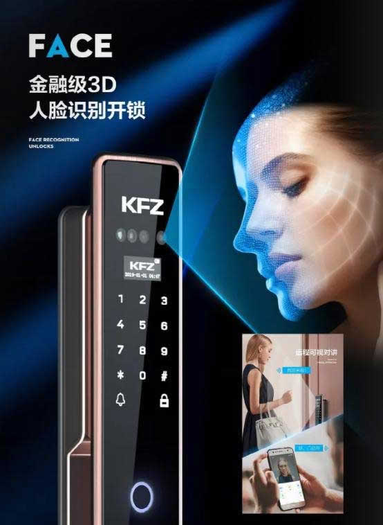自2020年初疫情以來,人臉識別鎖市場迎來了快速發展的契機,也是在同一年,KFZ智能鎖推出了3D人臉識別+可視貓眼的K8003B,從此邁入3D人臉鎖時代。