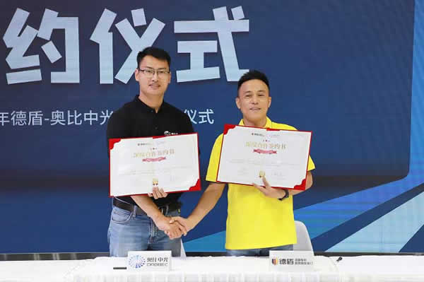 圖注:奧比中光與德盾現場簽約,左為奧比中光安防產品線副總經理李然春
