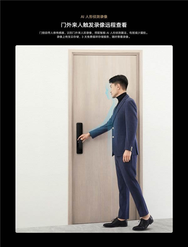 不僅如此,小米在鎖體本身也采用了高端全自動鎖體,用戶無需按壓或推拉把手,直接推門進(jìn)屋,方便快捷;出門時也能自動反鎖,而且上鎖的聲音也非常靜音。