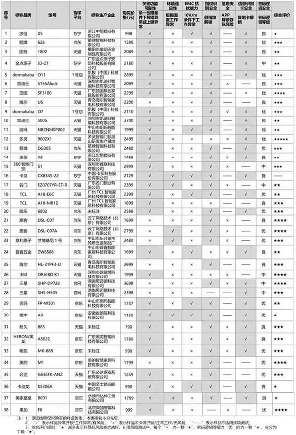 然而8月12日的央視《每周質(zhì)量報(bào)告》報(bào)道,北京、天津、河北三地消費(fèi)者協(xié)會(huì)對(duì)28個(gè)品牌的38款智能門鎖樣品進(jìn)行檢測(cè)發(fā)現(xiàn),竟然沒有任何一款智能門鎖通過所有項(xiàng)目檢測(cè)。