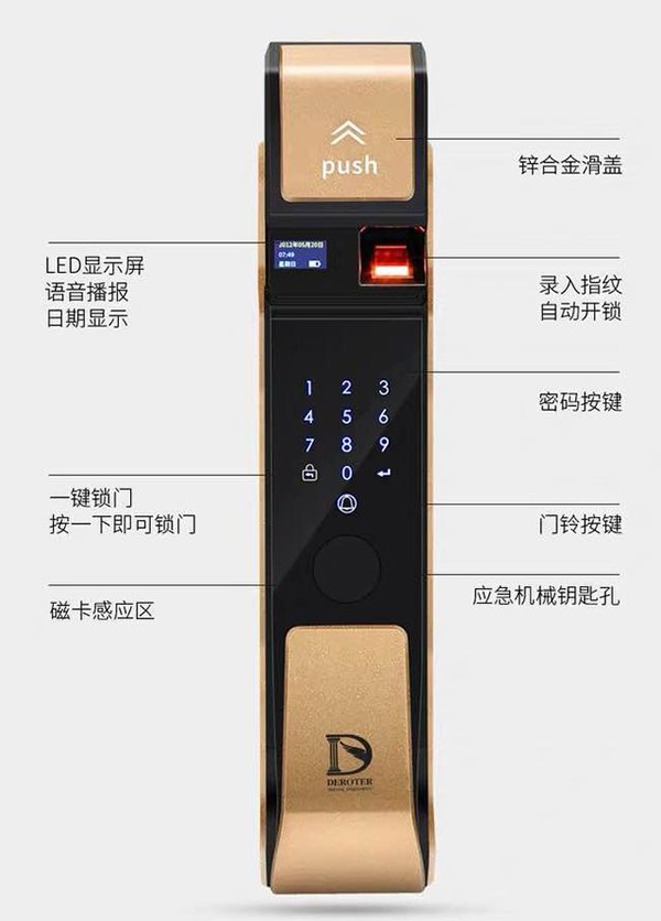 科技的飛速發(fā)展充實著我們身邊的生活,帶來了便捷,帶來了高效,帶來了安全。想必多數人都有過類似出門忘帶鑰匙、鑰匙丟失類的問題。尤其是現在多數年輕人獨身在外打拼,快節(jié)奏的生活、高強度的工作,多少更容易引發(fā)小失誤的發(fā)生,丟鑰匙事小,挽回起來就麻煩了,找人開鎖花錢還耽誤時間,緊接著還要想著換鎖……實實在在的一石掀起千層浪。 當然如果家里有了密碼指紋鎖,這方面的問題真的就不是問題了。不過話說回來越是便捷反而越是讓人擔心安全問題,密碼偷窺、復制指紋膜、錫紙開鎖、貓眼盜竊,暴力敲門……真實案例比比皆是。也著實讓人感覺只能在選擇中擔心,又迫不得已的在擔心中選擇,最后無奈的安慰自己所做的一切都是放君子不防小人。不過今天德諾特指紋智能鎖真的是迎著這些問題來的,說到德諾特,想必大家都知道他們做安全門是非常有名的,但是智能指紋鎖怎么樣?讓我們一起來認識下工藝品外表的它那顆智能、安全、堅強、高效的心。