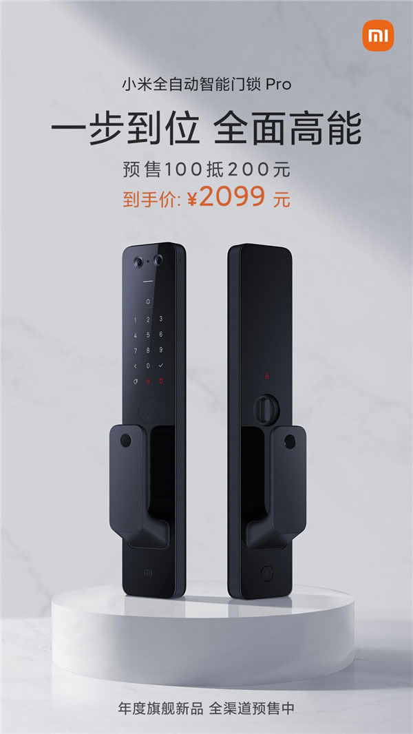 6月29日,小米全自動智能門鎖Pro在全渠道開啟預售。此次新品主打攝像頭功能,為此小米特別研發了172高清攝像頭及多項配套功能。預售期間定金100元可抵200元,到手價2099,參與預售、付完尾款后加贈米家智能驅蚊器2。 據悉,小米全自