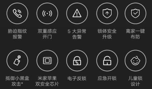 除了豐富的智能化解鎖方式以外,小米全自動智能門鎖的安防性能也十分出色。小米全自動智能門鎖擁有10重安全防護,例如脅迫指紋報警、雙重感應開門、5大異常警告、鎖體安全升級、離家一鍵布防等等,全面守護家庭安全。