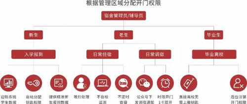 高校人員流動性大,管理人員無法掌控門鎖。采用智能聯網門鎖之后,由于門鎖都由后臺統一控制,方便的不僅僅是學生,更多的是讓管理者能夠實時的了解到學生的動態,通過學生的刷卡數據,可以分析學生的歸寢情況和有無異常發生。除此之外,在每年新生入校,老生離校的時候,不需要再一個個去收集鑰匙或者去更換鎖芯,只需要將授權名單從管理軟件中解除,再新增授權名單即可。