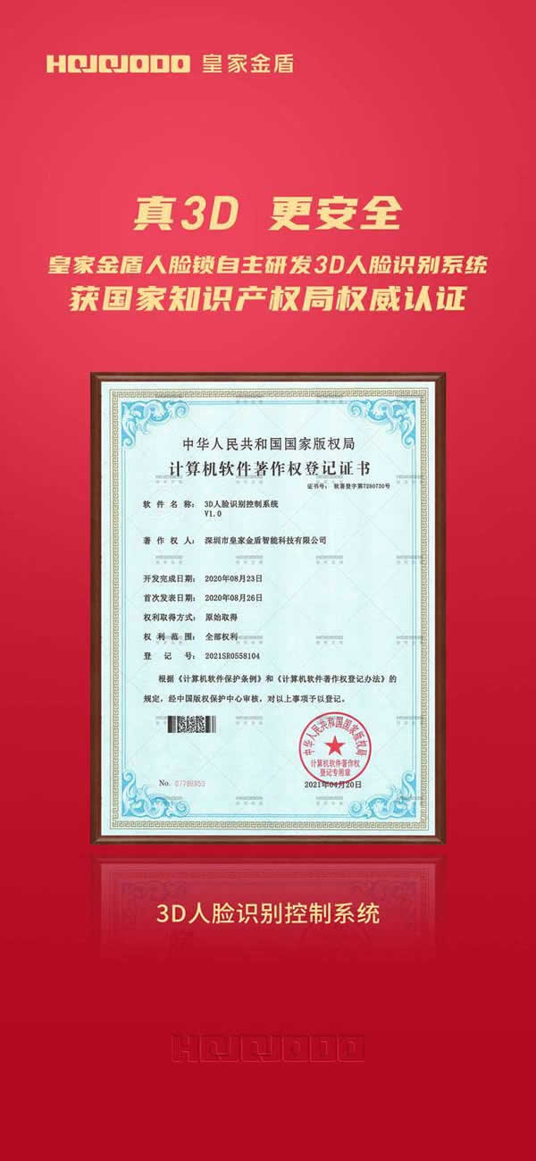 根據(jù)《計(jì)算機(jī)軟件保護(hù)條例》和《計(jì)算機(jī)軟件著作權(quán)登記辦法》的規(guī)定,經(jīng)中國版權(quán)保護(hù)中心審核,中華人民共和國國家版權(quán)局對(duì)我司提交的以下三項(xiàng)3D人臉識(shí)別技術(shù)計(jì)算機(jī)軟件著作權(quán)認(rèn)定為原始取得并予以登記,從頒證之日起,這3項(xiàng)系統(tǒng)軟件的版權(quán)將得到中國版權(quán)保護(hù)中心的有效保護(hù)。