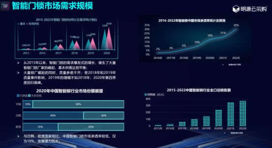 預計到2022年,我國家庭智能門鎖銷量將超2800萬把,其滲透率也將遠超2020年的19%,將達到35%,接近歐美水平。