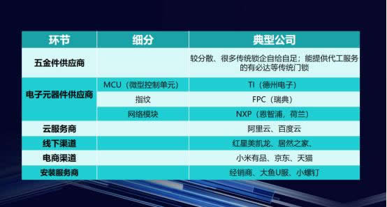 一直以來,門鎖產業鏈由上游供應鏈、智能門鎖廠商、分銷渠道組成,經過層層分銷最終觸及終端用戶。