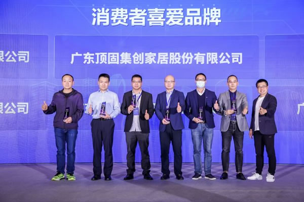 △頂固公司代表(右二)上臺領取“消費者喜愛品牌獎”