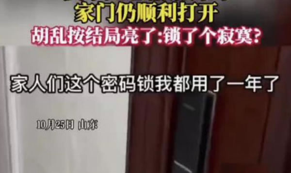 據大灣區視頻報道,10月25日,山東一女子輸密碼進家門,無意輸錯密碼,奇怪的是家門竟然可以打開。